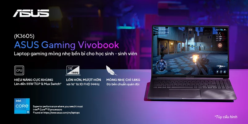 Laptop Gaming MSI Thin 15 B13UC-1411VN (i7-13620H, RTX 3050 4GB, RAM 8GB DDR4, SSD 512GB, 15.6 Inch IPS FHD 144Hz)